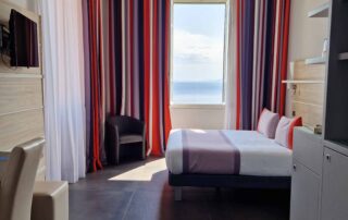 Our suites have a lounge area with sofa, ideal for a family stay. Fully equipped, you will find absolute comfort and a breathtaking view of the Mediterranean.