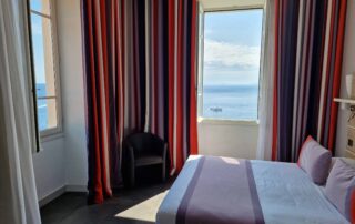 Nos suites disposent d’un coin salon avec canapé, idéal pour un séjour en famille. Entièrement équipées, vous y trouverez un confort absolu ainsi qu’une vue imprenable sur la Méditerranée.